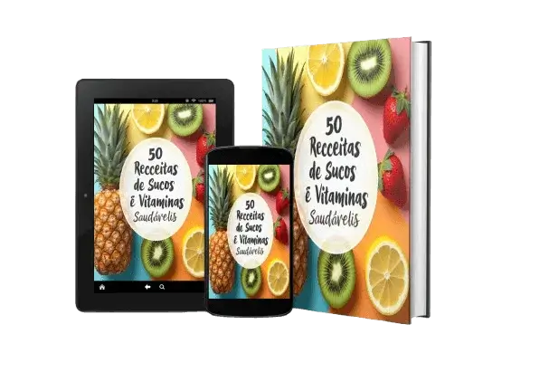 50 receitas de sucos e vitaminas deliciosas, todas feitas com frutas, sem adição de açúcar, promovendo saúde e resultados positivos.