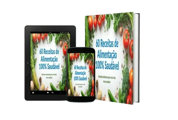 60 Receitas de Alimentação 100% Saudável". Inclua o subtítulo: "Receitas deliciosas para uma vida mais saudável".